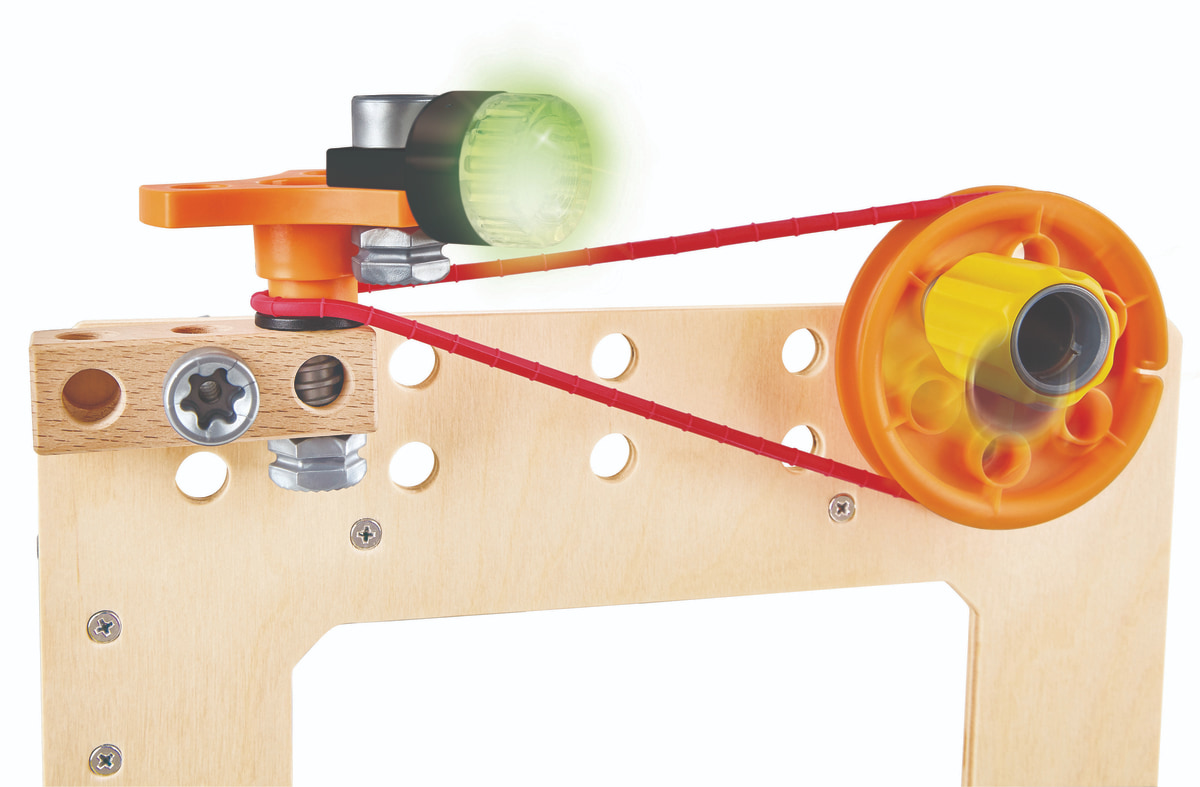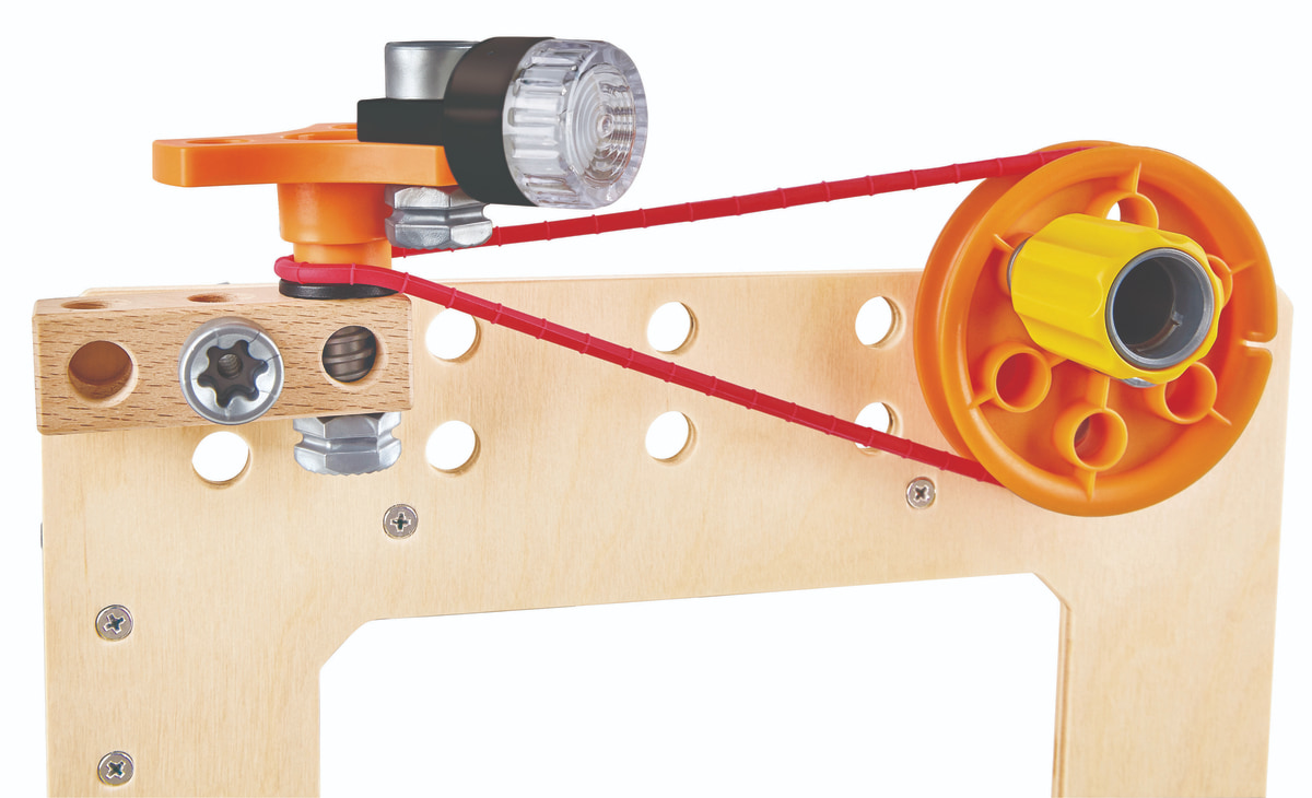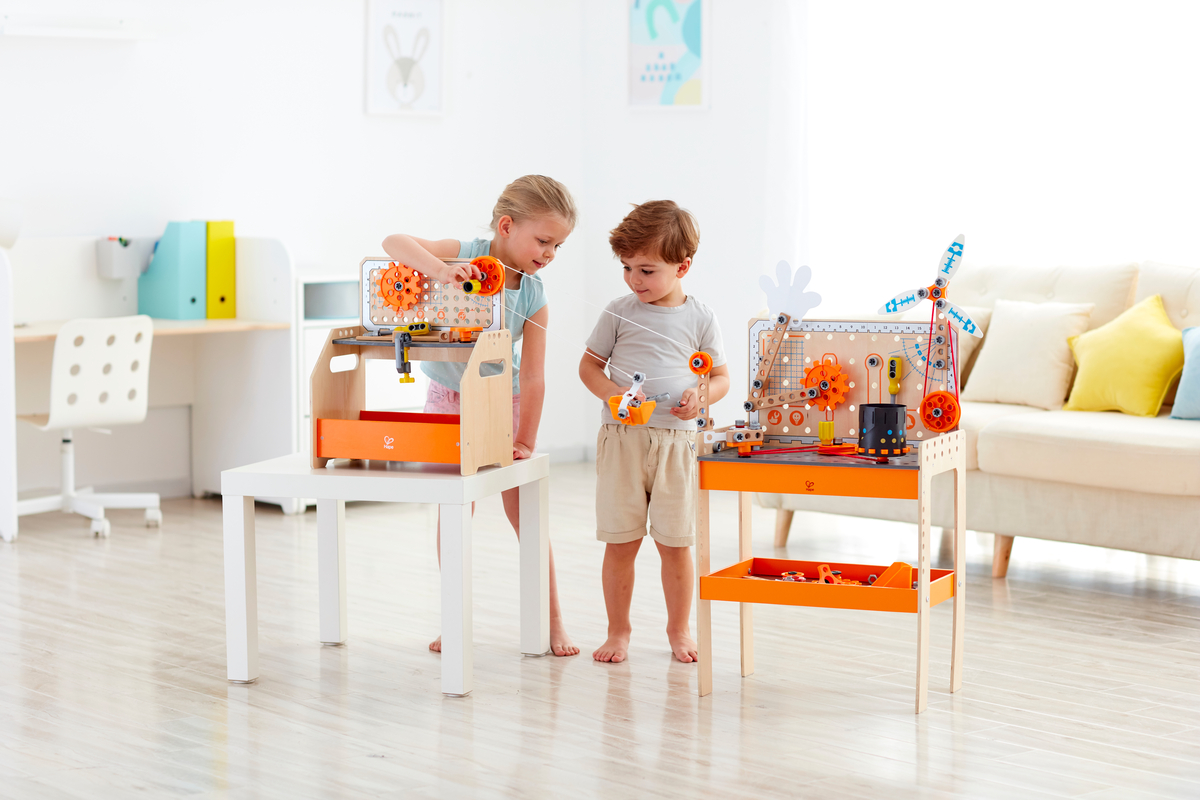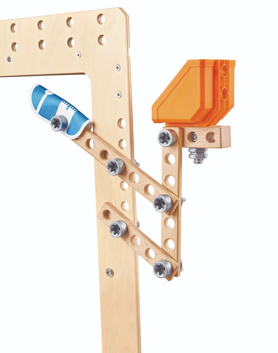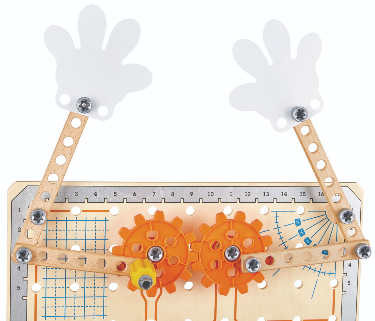 A Deluxe Tudományos Munkapad ötvözi a klasszikus szerelős játékot az alapvető tudományos kísérletezéssel. A gyerekek nemcsak csavaroznak és kalapálnak – hanem megértik az ok-okozatot, a mozgást, a mágnesességet és az egyszerű mechanikát.