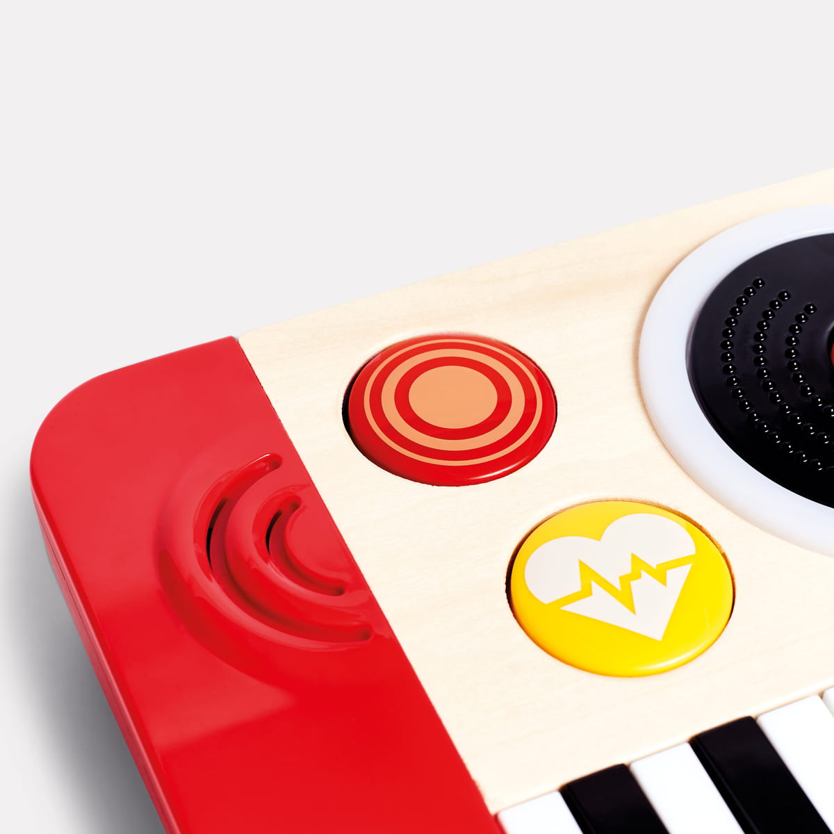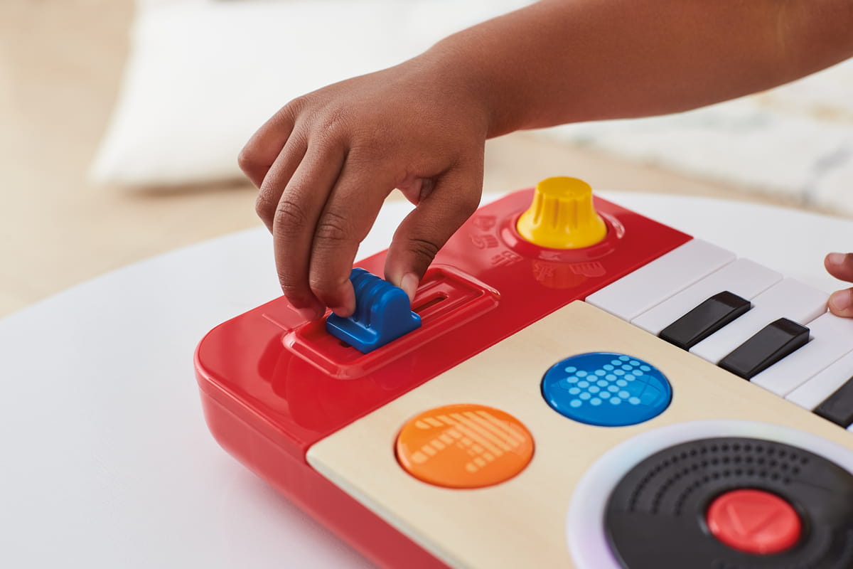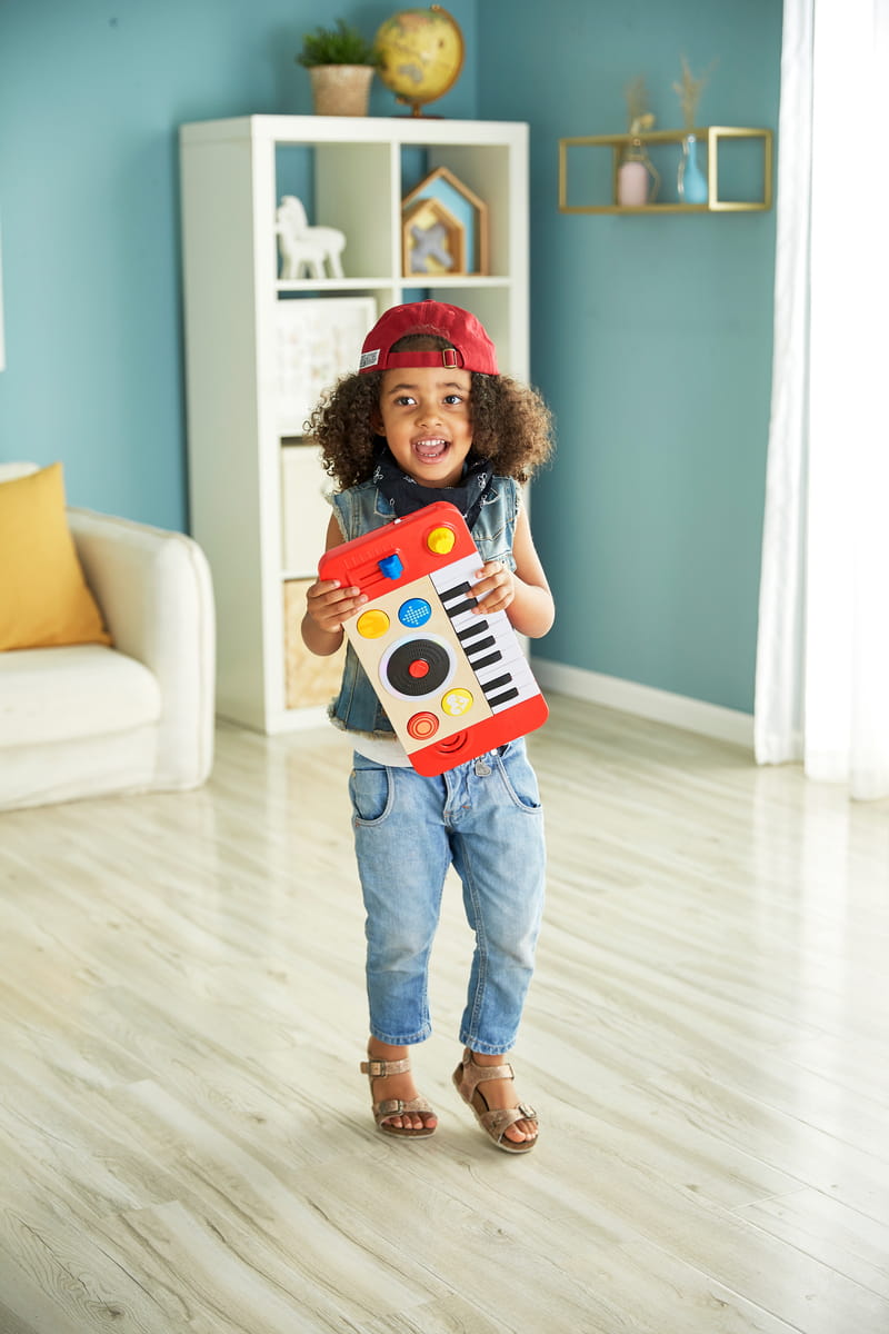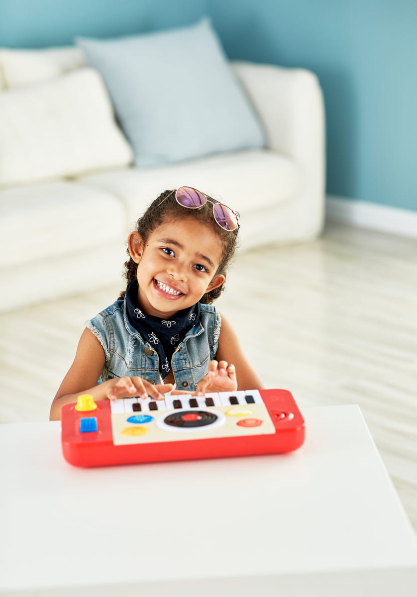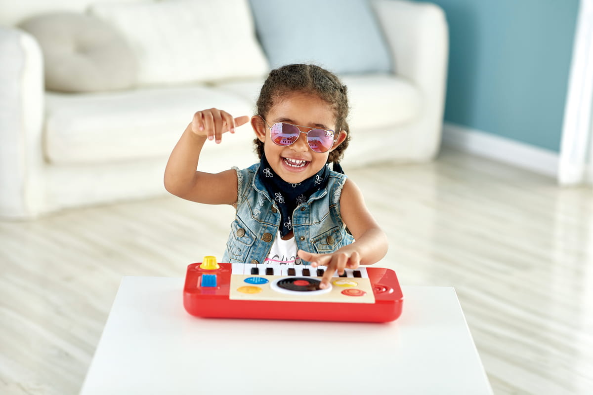 Ez az interaktív zenei játék lehetőséget ad arra, hogy a gyerek saját ritmusokat és hangzásokat hozzon létre, miközben aktívan alakítja a zenét tekerőkkel, gombokkal és effekt elemekkel.