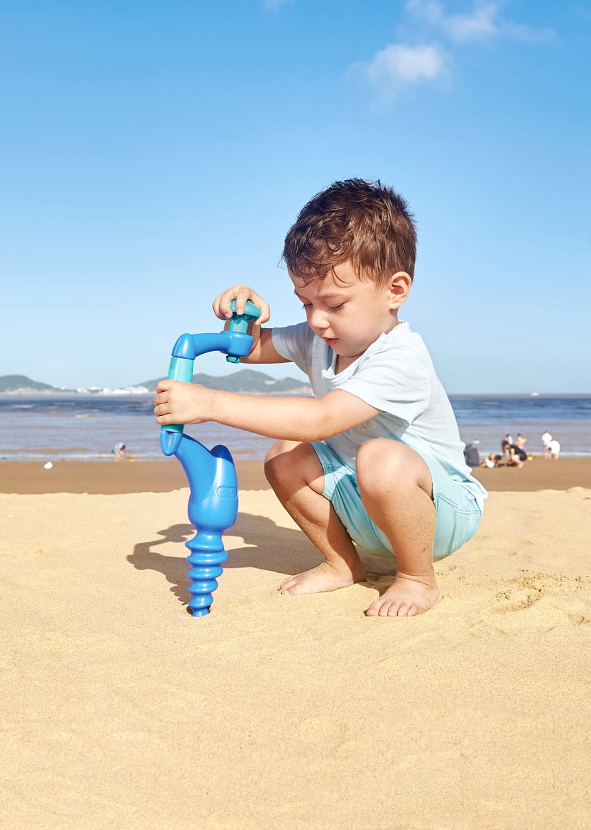 A Hape Driller egy spirál kialakítású homokfúró, amellyel a gyerekek valódi fúrás élményét próbálhatják ki a strandon vagy a homokozóban. A hosszú csavaros spirál segítségével a gyerekek egyszerűen a homokba forgathatják a fúrót, majd kihúzva mély lyukakat készíthetnek.