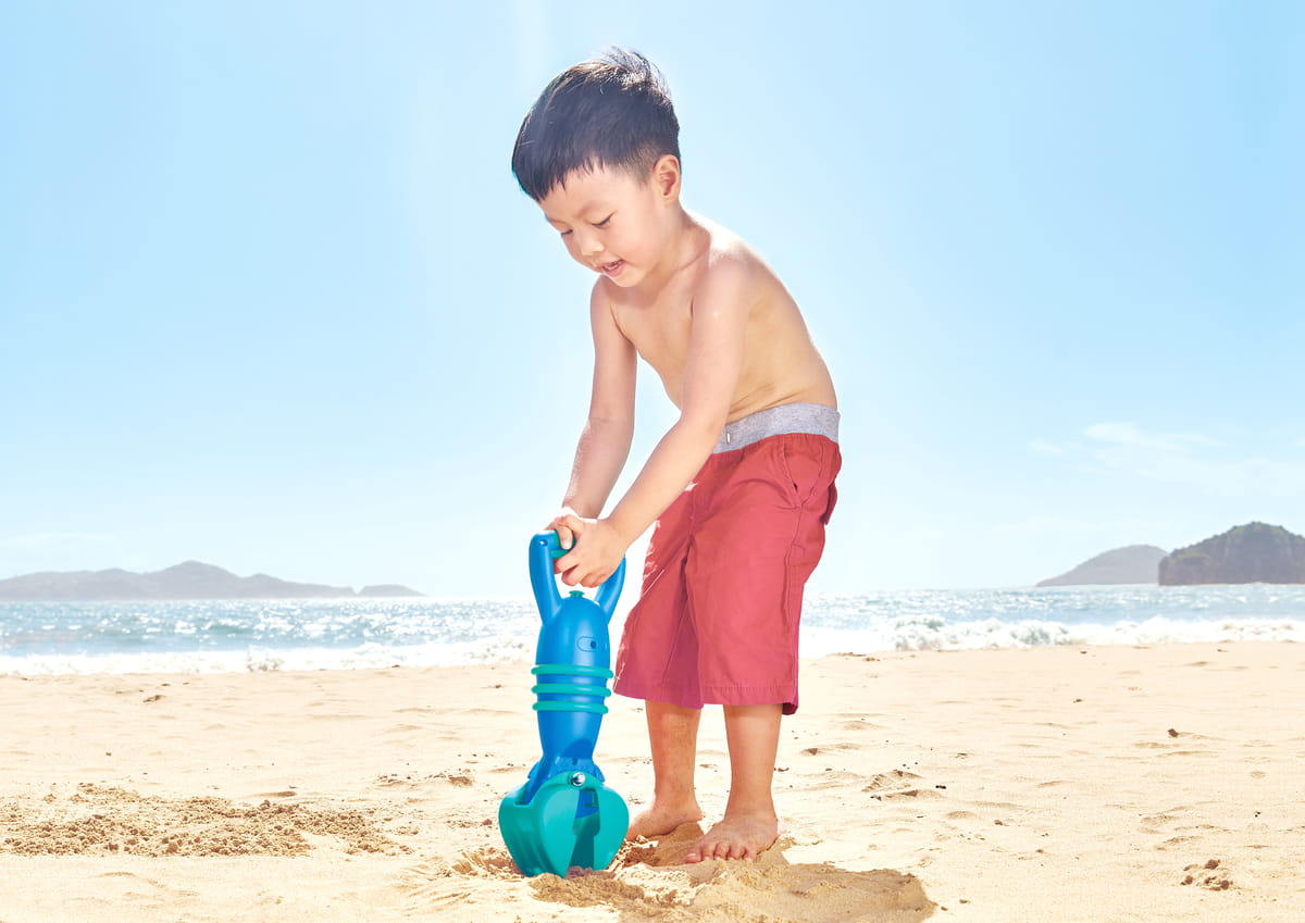 A robusztus kialakítás és a nagy markolófelület lehetővé teszi, hogy a gyerekek „dínó méretű” adagokat emeljenek fel a homokból. Ideális játék a strandra, a kertbe vagy a homokozóba.