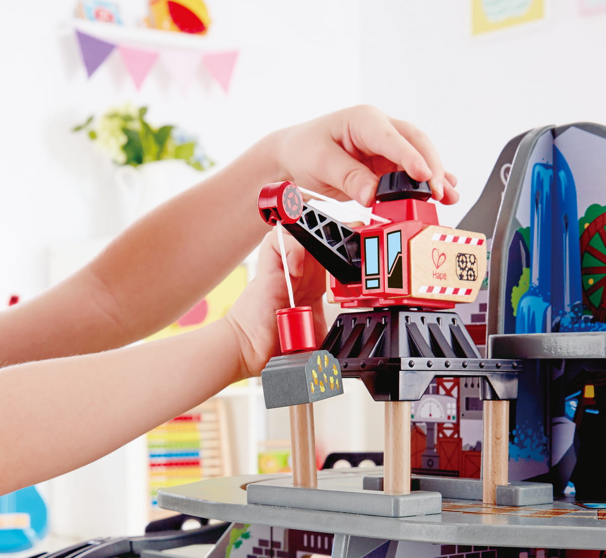 A készlet számos elemet tartalmaz: vízesési alagutat, akadályhidat, darut, szállítószalagot, szerelőállomást és több pályaszintet, amelyeken keresztül a vonat átmehet. A játék során a gyermek kombinálja a mozgást, történetalkotást és a problémamegoldást – miközben minden egyes szint új kihívást és felfedeznivalót kínál.