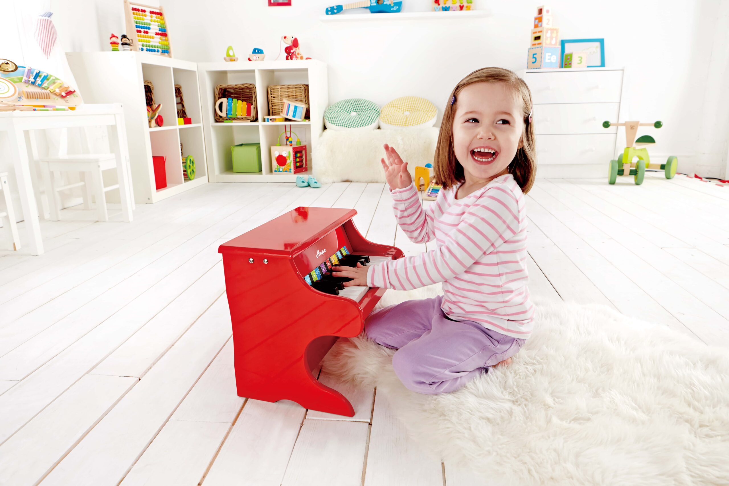 Az első saját hangszer élménye meghatározó. Ez a gyermekek számára tervezett zongora valódi billentyűkkel működik, amelyek lenyomására hang szólal meg, így a kicsik azonnal kapcsolatba kerülnek a hangmagasság és a ritmus világával. A színes billentyűk segítik a vizuális tájékozódást, megkönnyítve az egyszerű dallamok követését és ismétlését.