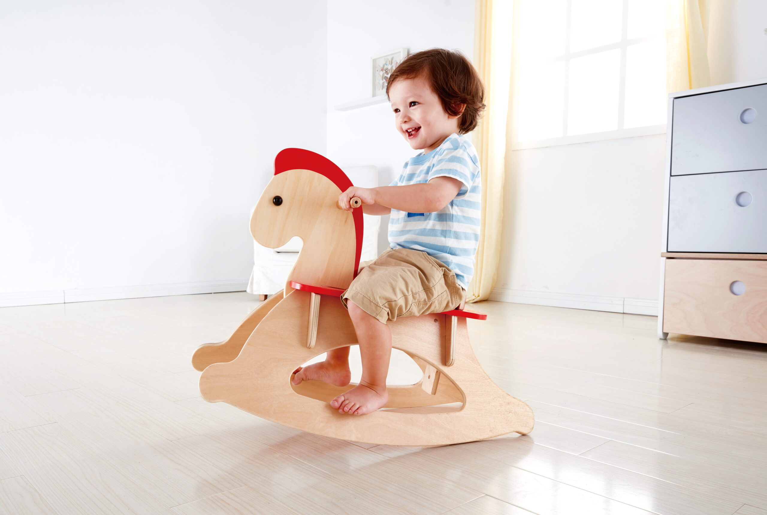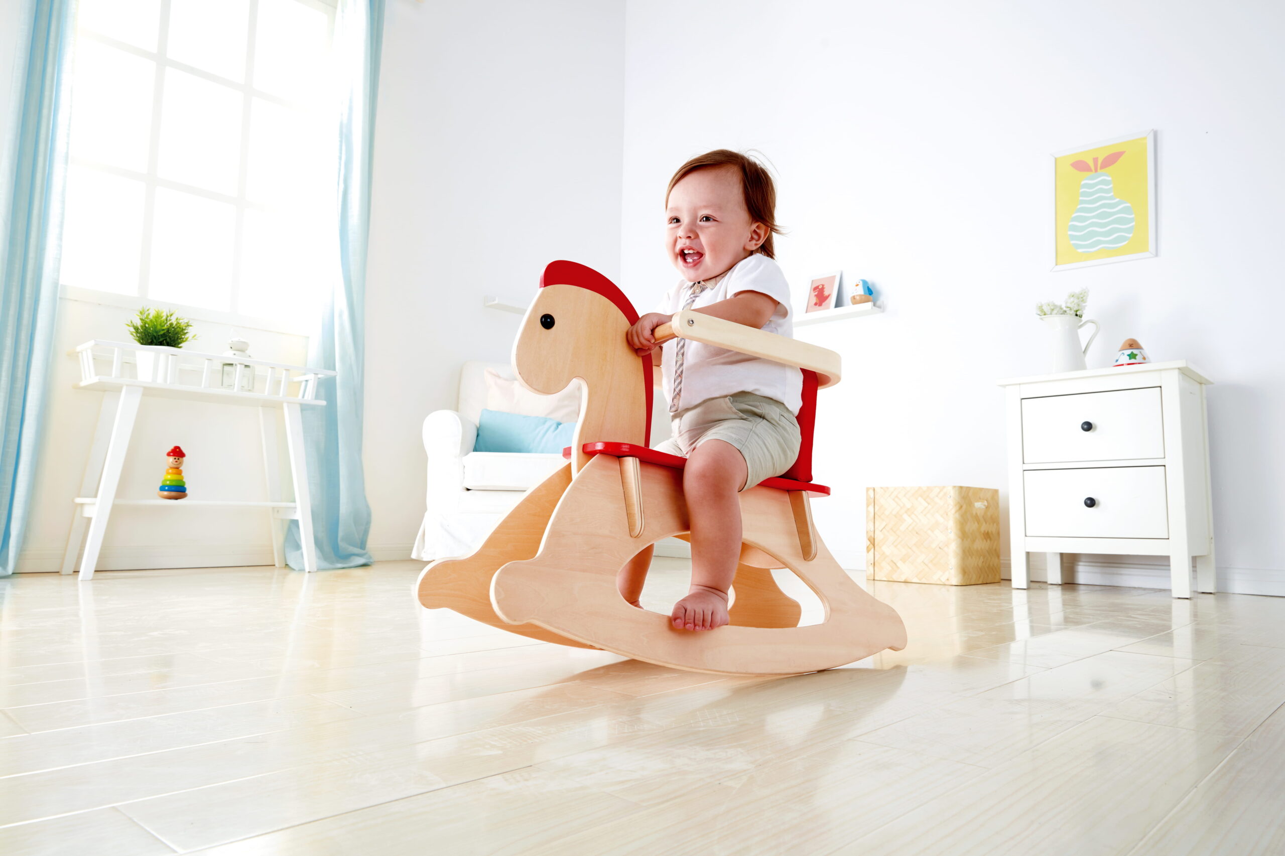 A Növekvő Hintaló kifejezetten a járni tanuló korosztály számára készült. Alacsony ülésmagassága és széles talpsínje stabil ringató mozgást biztosít, így a baba biztonságosan tapasztalhatja meg az egyensúlyozást.