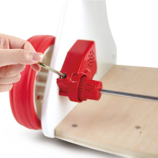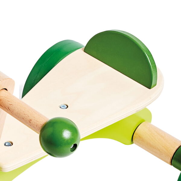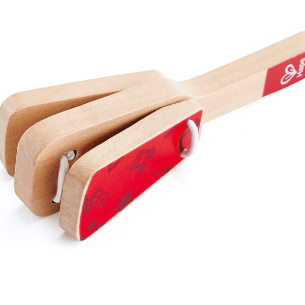 A készletben három különböző geometriai formájú csörgő található: egy gömb alakú játék fa gyönggyel, egy henger alakú csörgő csengővel, valamint egy négyzet alakú játék színes gyöngyökkel és egy átlátszó színes lencsével.
