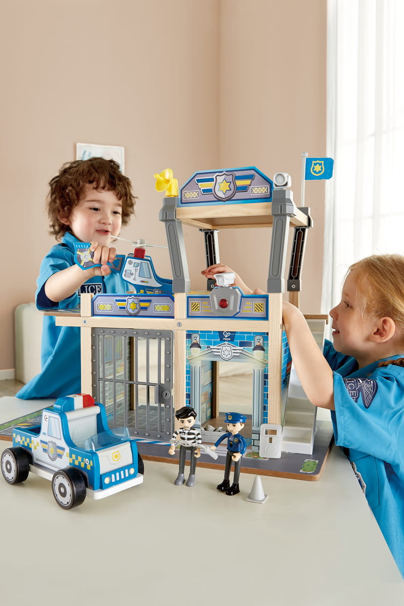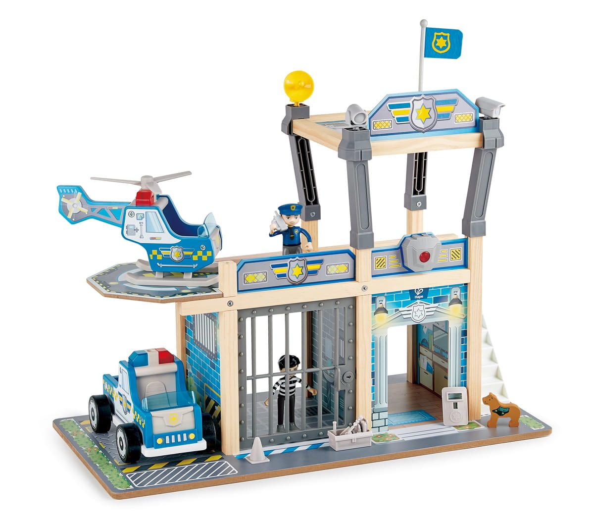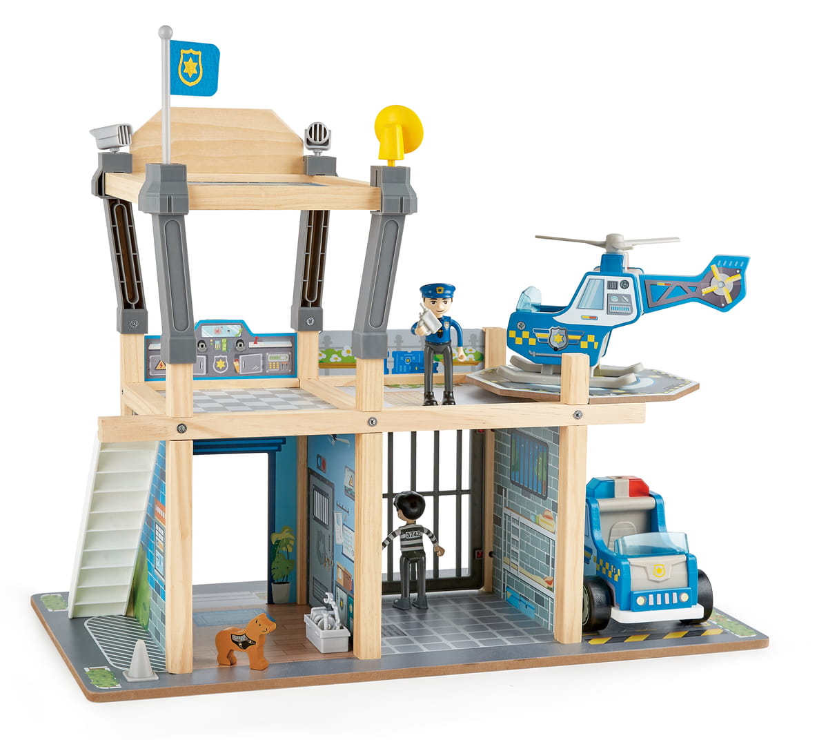 Ez az izgalmas rendőrségi játékszett lehetővé teszi, hogy a gyerekek saját bűnüldözős történeteket találjanak ki. A részletesen kidolgozott rendőrkapitányság helikopterleszállóval, börtöncellával és parkolóval várja a kis rendőröket, akik a város biztonságáért felelnek.