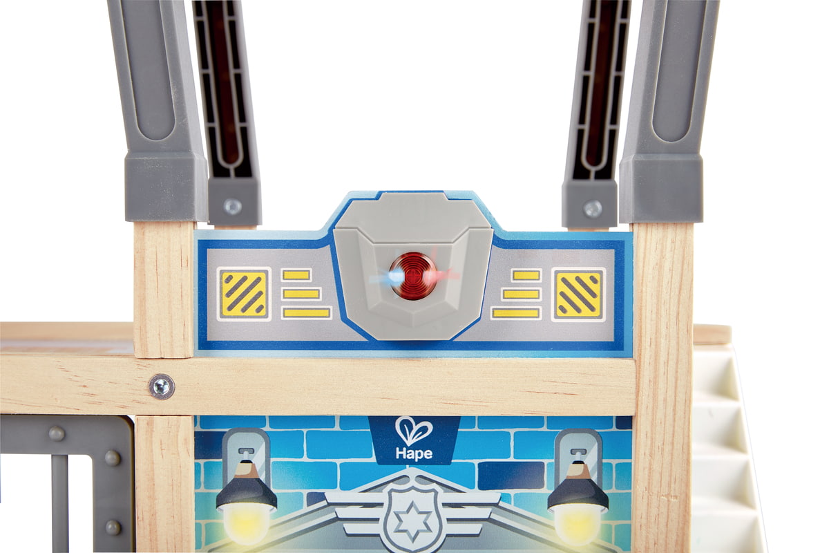A kapitányság riasztóval van felszerelve: a gomb megnyomásakor fény és hang jelzi a vészhelyzetet. Így a gyerekek átélhetik a valódi bevetések izgalmát.