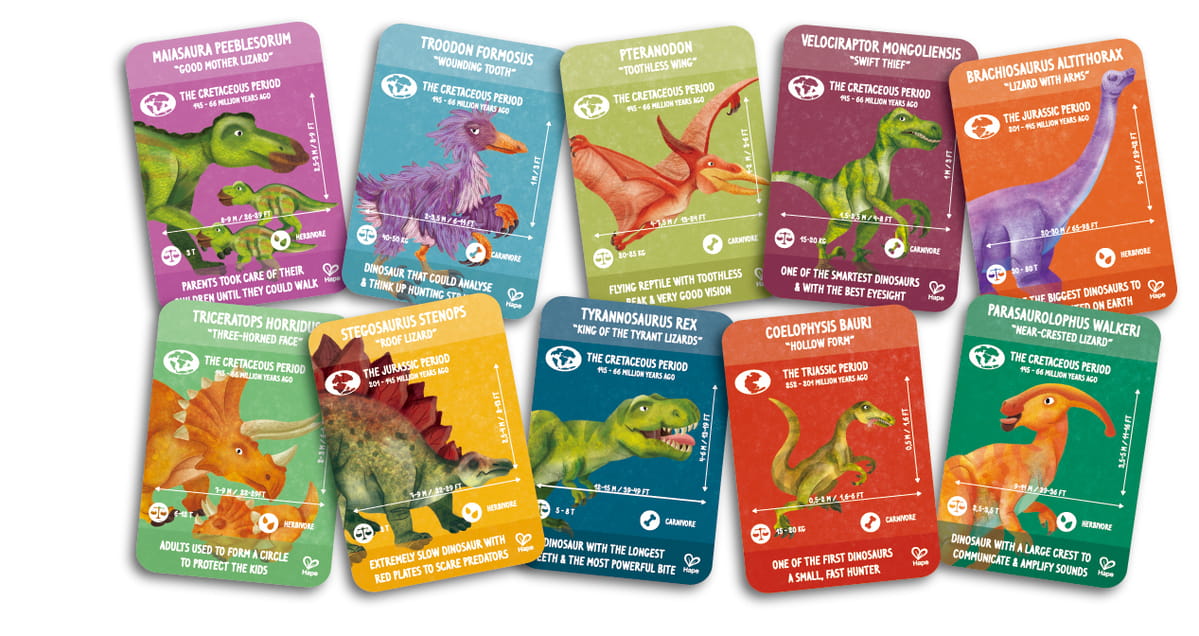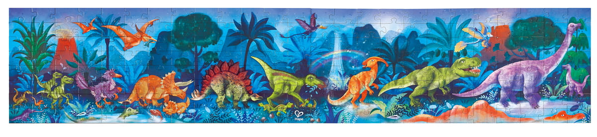 A 200 darabos kirakó padlópuzzle formátumban készül, így nagy felületen rakható össze. A csomag 10 ismeretterjesztő kártyát is tartalmaz, amelyek érdekességeket osztanak meg a dinoszauruszokról.